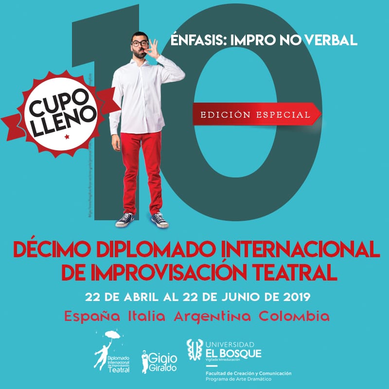 Teatro Corproral, invitado por el Reconocido Maestro Gigio Giraldo, Director del X Diplomado Internacional de Improvisación Teatral de la Universidad de El Bosque en Bogotá, para Dictar el Modulo 2 sobre La Improvisación Corporal: ImproPercepción