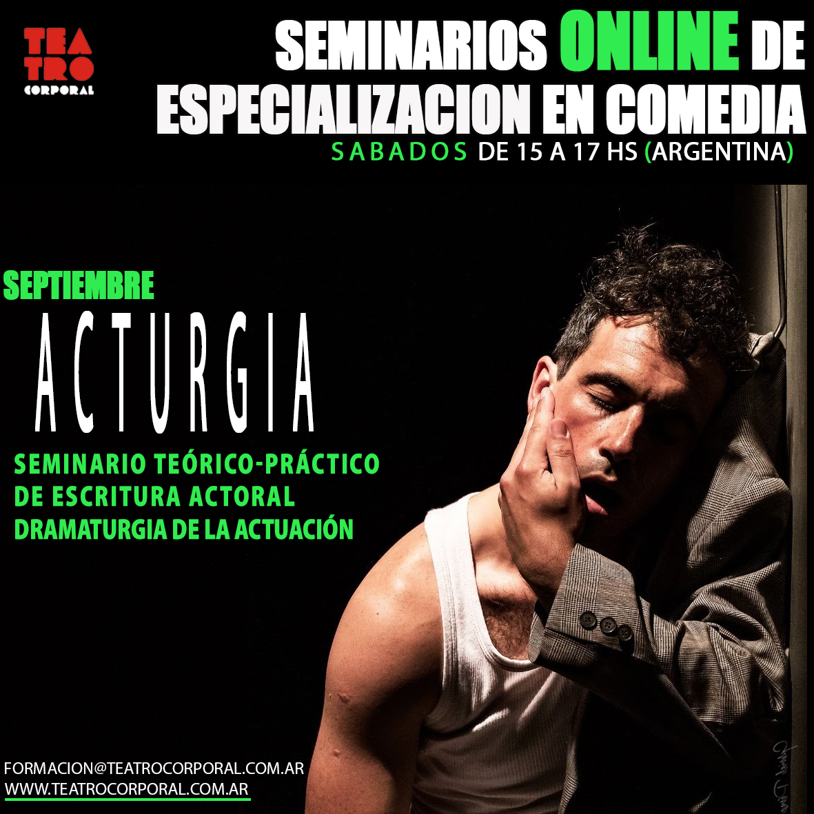 En este seminario abordaremos la escritura para y desde la actuación utilizando el modelo dramatúrgico de la Commedia Dell Arte como un andamiaje para desarrollar fluidamente la relación entre el papel y las tablas.